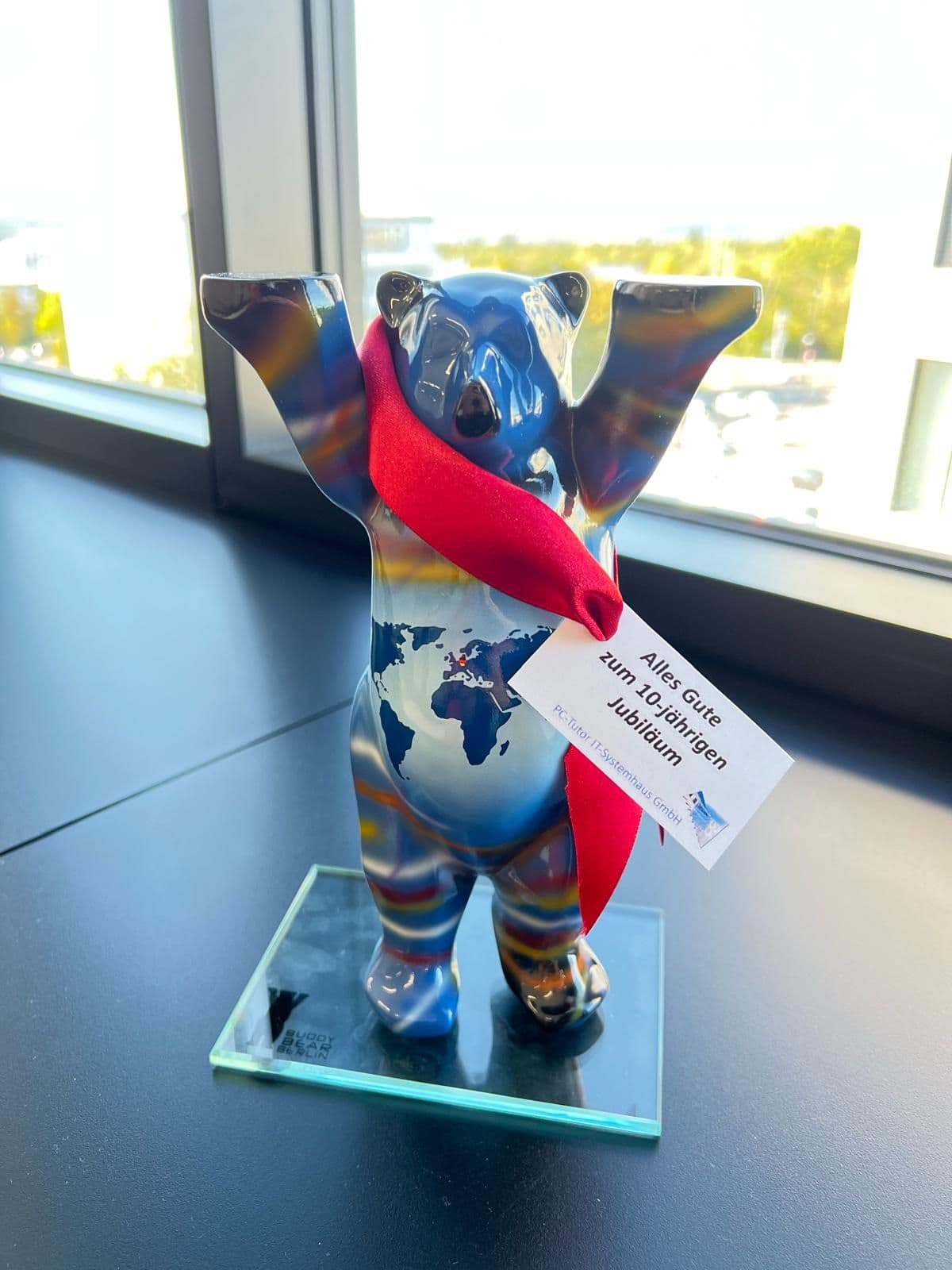 Das Engagement des Vereins würdigte ein Mitglied mit einem ganz besonderen Geschenk: Irina Grosch von PC Tutor überreichte dem Vorstand den Berliner Buddy Bären „Perspektive" - ein Symbol für Offenheit und neue Blickwinkel. Danke dafür noch einmal!