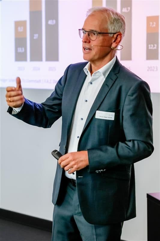Eine spannende Podiumsdiskussion mit Prof. Holger Schmidt, Gerd Ohl, Prof. Dr. Gerrit Sames und Michael Finkler, moderiert von unserer Pressesprecherin Ulrike Peter, führte unterschiedliche Perspektiven auf die Digitalisierung zusammen. Auch hier zeigte sich: Kl ist ein wichtiger Hebel für den industriellen Mittelstand, um Optimierungspotenziale zu heben.