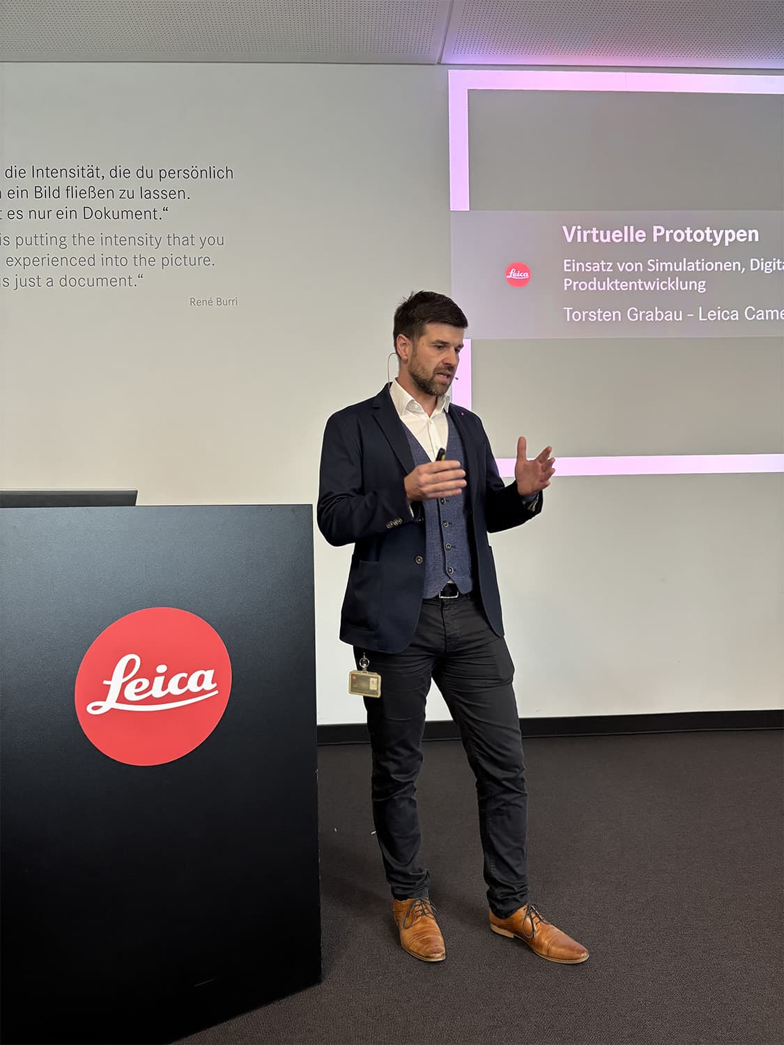 Unser Gastgeber Leica Camera AG zeigte uns, wie fortschrittlich das Unternehmen aufgestellt ist: Torsten Grabau gab Einblicke in den Einsatz von Simulationen und Digital Twinning in der Produktentwicklung.