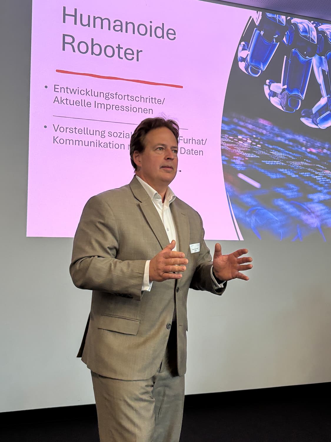 Prof. Holger Schmidt (FAZ – Redaktionsleiter) holte uns mit seiner Kl als Produktivitätsbooster für die Industrie und Gamechanger für die Arbeit mitten in die Welt der Kl. Er rief eindringlich dazu auf, Kl aktiv in unser privates wie berufliches Leben zu integrieren - mit Offenheit und Neugier.
